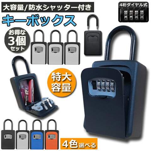 キーボックス セキュリティキーボックス 3個セット 鍵共有 屋外 鍵収納ボックス ダイヤル式 防水 暗証番号 大容量 操作簡単 ロックポケット 4桁 暗証番号 南京錠式 盗難防止 侵入対策