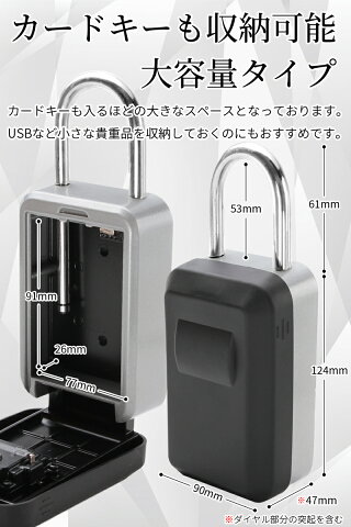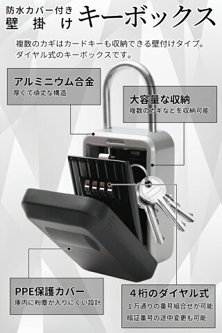 【商品詳細】 〈セット内容〉キーボックス本体・防水カバー・ ネジ×4・拡張チューブ×4 〈サイズ〉外部:約124×90mm、 U環部:全長約61mm、 内部:約91×77× 〈素材〉キーボックス本体:アルミニウム合金、 防水カバー:PPE(ポリフェニレンエーテル) 【生産国】中国 (注意事項) モニターの発色によって色が異なって見えることがございます。