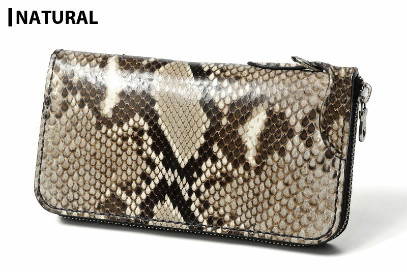 ギフト対応 ■品名:ラウンドファスナーロングウォレット [TYPE-1] ■素材:オイルレザー/ダイヤモンドパイソン ■サイズ:200×105×厚み25mm ■ファスナーカラー 外側/内側:ブラック(金具/シルバー) ■仕様: カード入れ×16 札入れ(マチ有)×2 札入れ(マチ無)×2 小銭入れ×1 規格外カードポケット×1 チェーン取付金具(オリジナル刻印入り丸カン)付き ※シニューによる完全手縫い仕上げ。