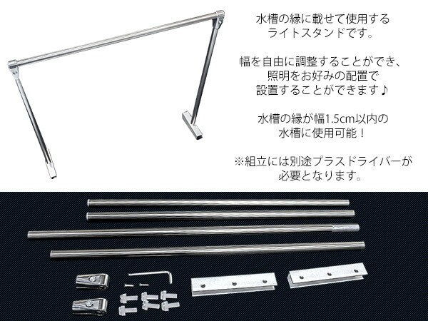 水槽の縁が幅1.5cm以内の水槽に使用可能!※組立には別途プラスドライバーが必要となります。
