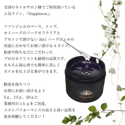 ジェルネイル クリアジェル 15g 3way ベースジェル トップコート ハピネス