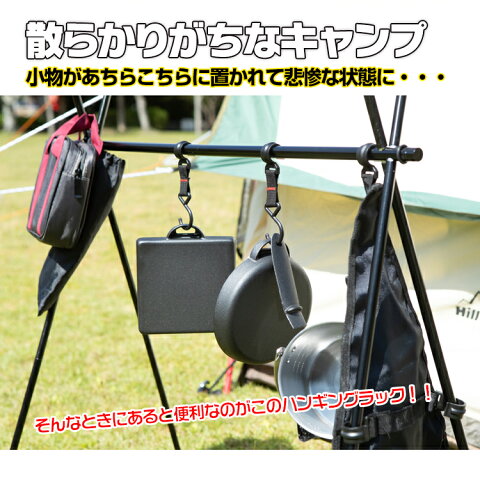 ■食器やランタン、キャンプ雑貨などを掛けられるアウトドアラック ■可動式ハンガーフックでお好きな配置に ■軽量だけどしっかりと支える頑丈なアルミフレーム ■折りたたみ式で設置楽々♪