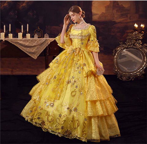 「記載のないアクセサリー、小物等は付属しません」 素材 .♔꙳∴ ポリエステル カラー .♔꙳∴ イエロー サイズ (cm) .♔꙳∴ フリーサイズ(F)/バスト87〜95 ウエスト70〜80 着丈145cm前後(肩から裾まで)※表記寸法と実寸値の多少の誤差はご容赦ください。